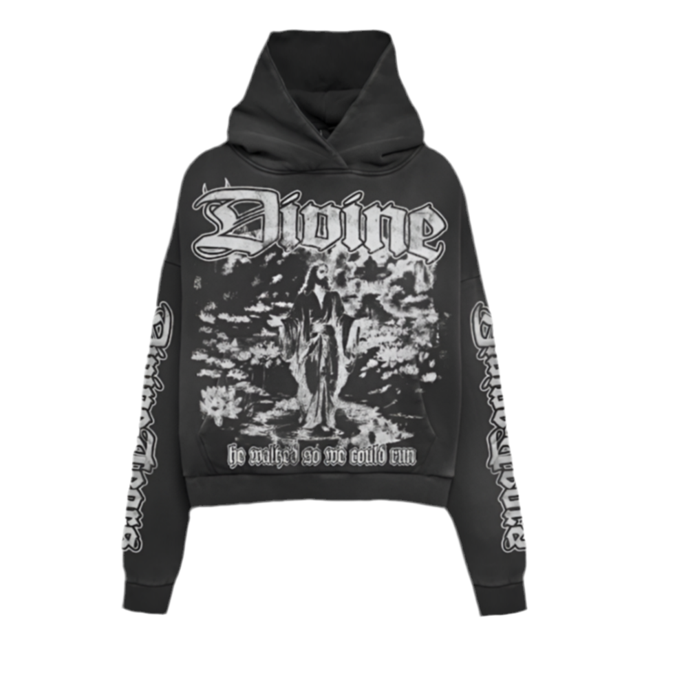 A deep canvas, Step out in style with our signature piece, crafted from the finest FRENCH TERRY COTTON and boasting a luxurious 350 GSM FABRIC. Experience the ultimate in comfort, warmth, and longevity with this divine Hoodie. Embellished with an image of Jesus, it embodies the journey from tranquility to the cosmos, symbolizing transcendence and individuality. Elevate your wardrobe with this sophisticated and exclusive statement piece.