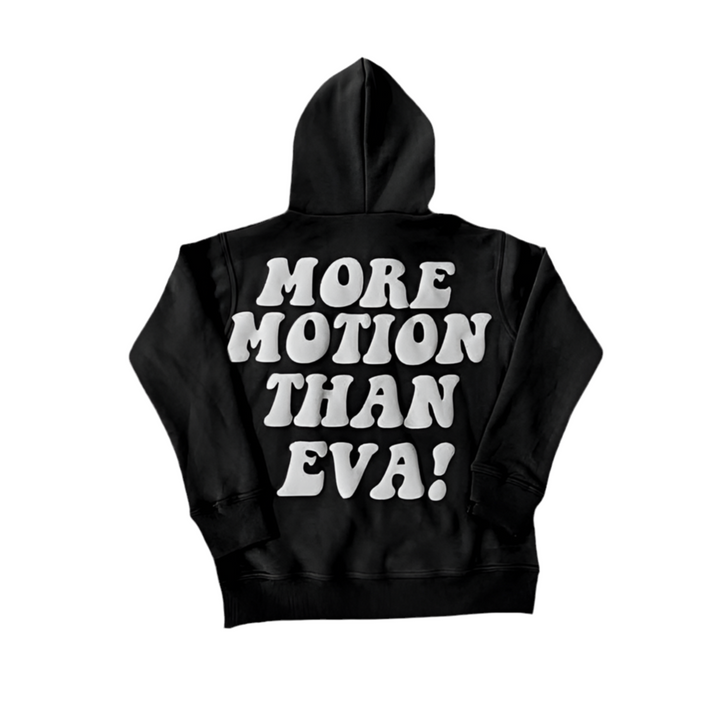 Level up your style with our "More Motion Than Eva”. Made with 100% premium cotton, this full zip offers maximum comfort, coziness and durability. This fashionable hoodie features jumbo puff prints. Whether you're staying in or stepping out, this hoodie is sure to turn heads and make a statement. Limited edition, shop now.